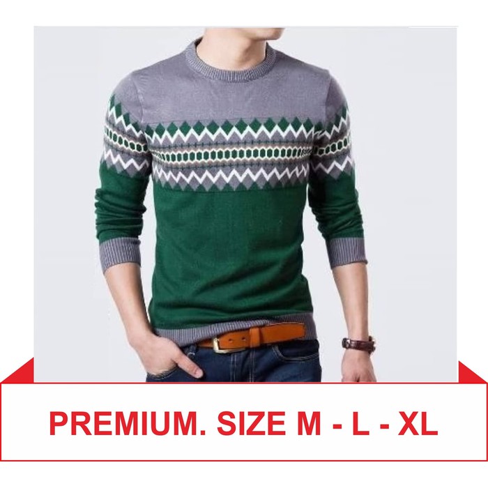 Promo DiskonPremium M L XL Michael Sweater Green Baju Rajut Pakaian Pria Sweater Korea Murah ayo segera dibeli