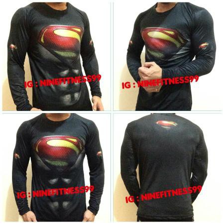 Koleksi Foto Produk Promo Baju Gym Fitness Tangan panjang Alter ego Superman/man of steel black Murah