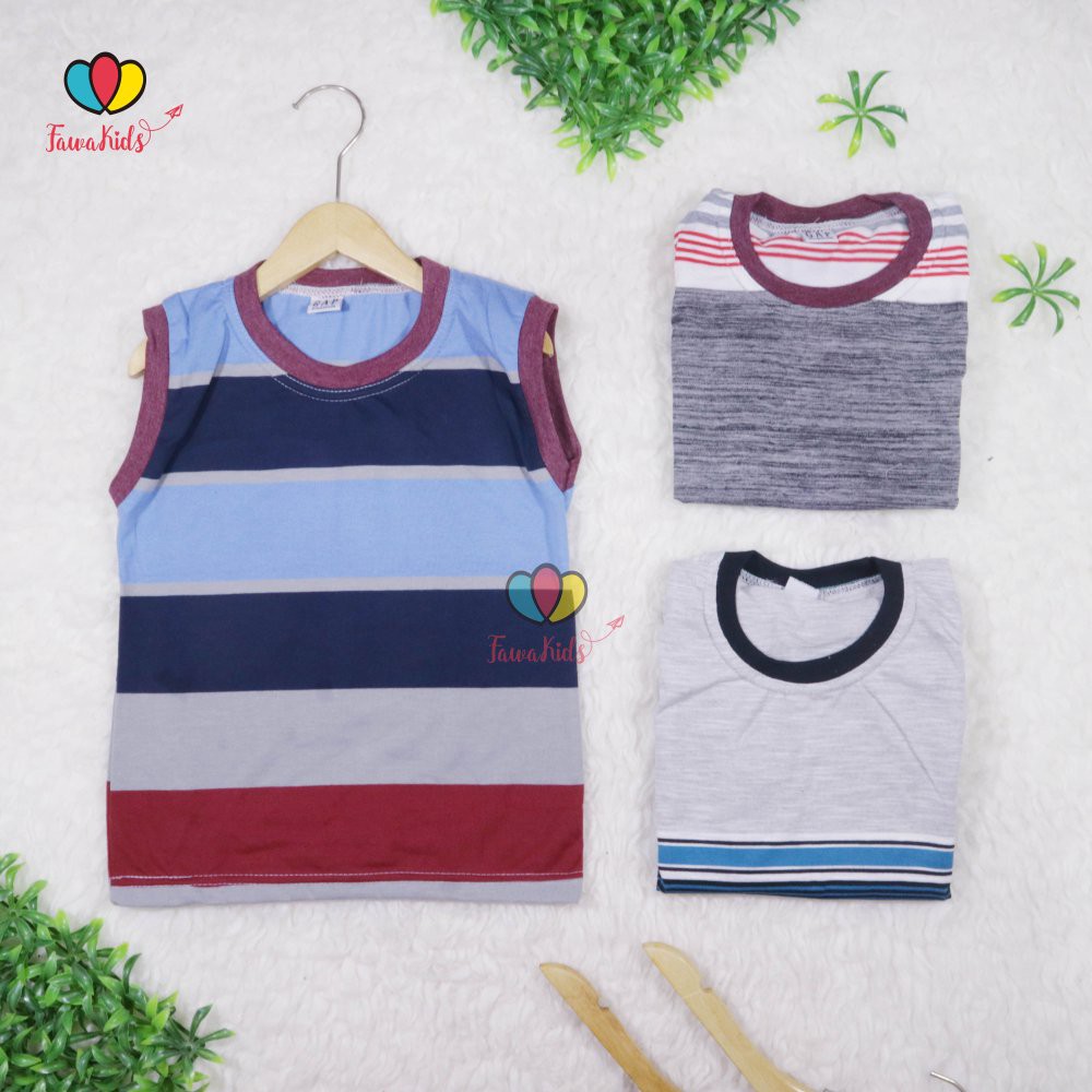 Seller Produk PROMO Kaos Oblong Salur uk Bayi 1-12 Bulan All Size Tanpa Lengan Yukensi Anak Cowok Baju Murah