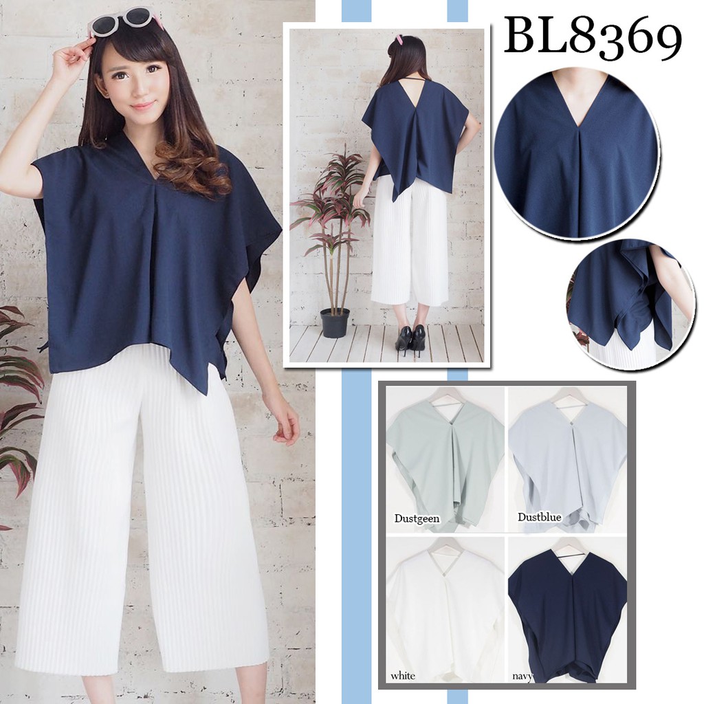 Penjual Produk Baju atasan blouse polos hijau biru putih navy pergi jalan santai fashion cewek wanita murah -8369