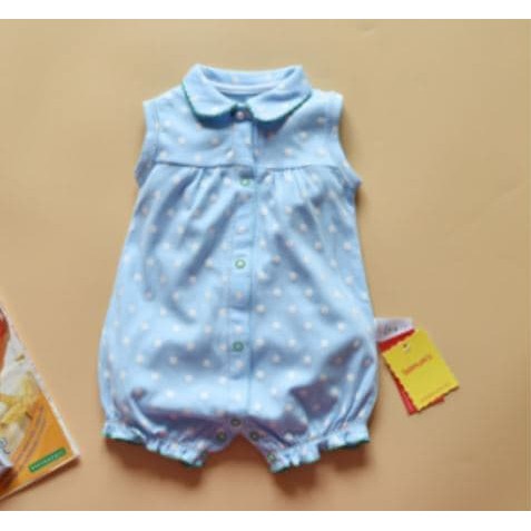 Promo Diskonpakaian baju romper anak bayi baby cewe perempuan biru kerah polkadot diskon murah sayang jika tidak diambil
