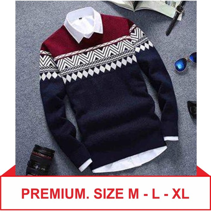 Produk Yang direkomendasikan terkait Premium M L XL Colombus Navy Baju Rajut Pakaian Pria Sweater Korea Murah