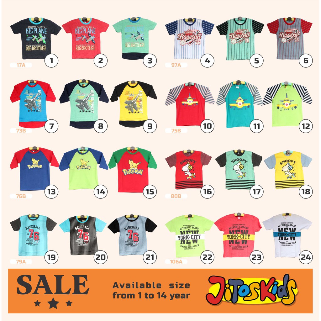 Produk Promo Baju Kaos Anak / Pakaian Anak JITOSKIDS kami rating di nomor ke- 77 untuk pencarian [ Fashion ].